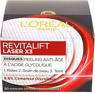 L’Oréal Paris – Disques Peeling Anti-Âge (x 30) – Revitalift Laser X3 – À l’acide Glycolique