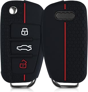 kwmobile Accessoire Clé de Voiture Compatible avec Audi Clé 3-Touches - Coque de Protection Souple en Silicone - Noir-Rouge